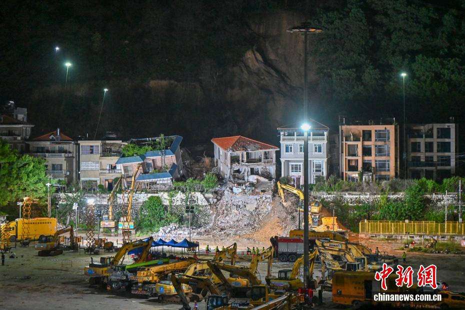 广州白云山体滑坡现场:救援人员彻夜开展抢险救援工作
