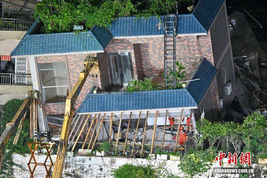 8月7日凌晨,救援人员在广州白云山体滑坡现场开展抢险救援工作。