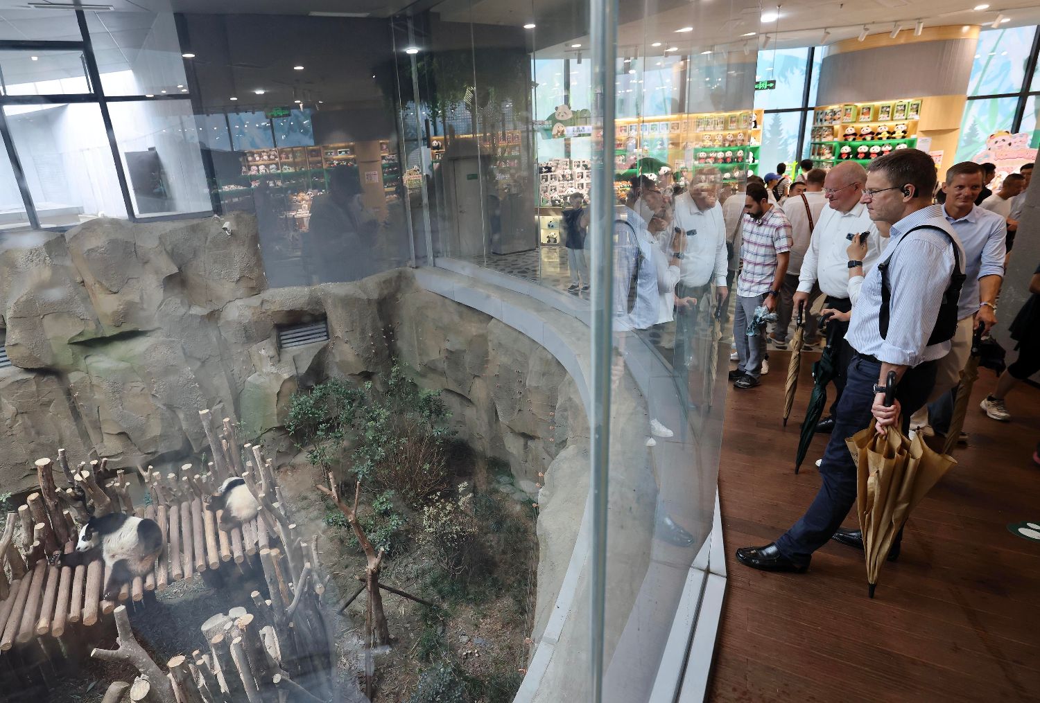 8月7日,部分来蓉参加成都世运会相关活动的驻华使节和领馆官员来到成都大熊猫繁育研究基地参观。(图片来源:中新社)