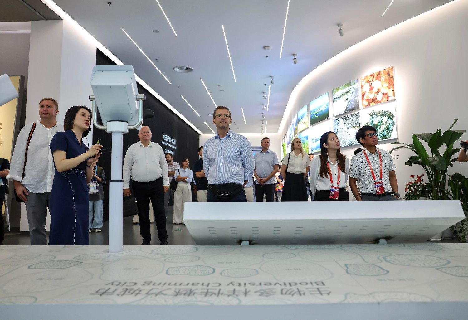 8月7日,部分来蓉参加成都世运会相关活动的驻华使节和领馆官员在成都规划馆参观。(图片来源:中新社)