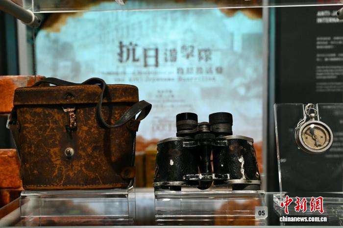 图为东江纵队港九独立大队成员使用的望远镜与皮套、指南针(复制品)。