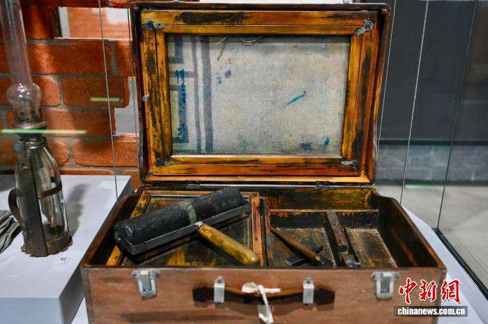 图为东江纵队港九独立大队成员制作宣传品的油印机(复制品)。