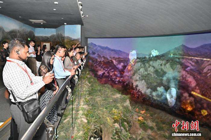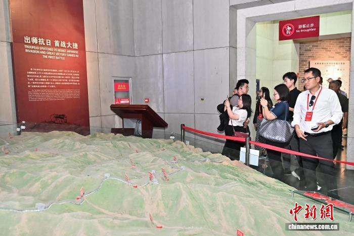 图为驻华外交官参观平型关大捷纪念馆活动现场。