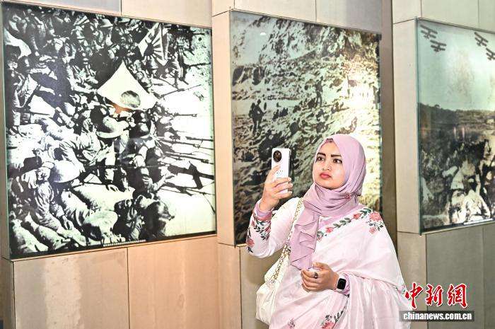 图为驻华外交官在平型关大捷纪念馆内拍照。