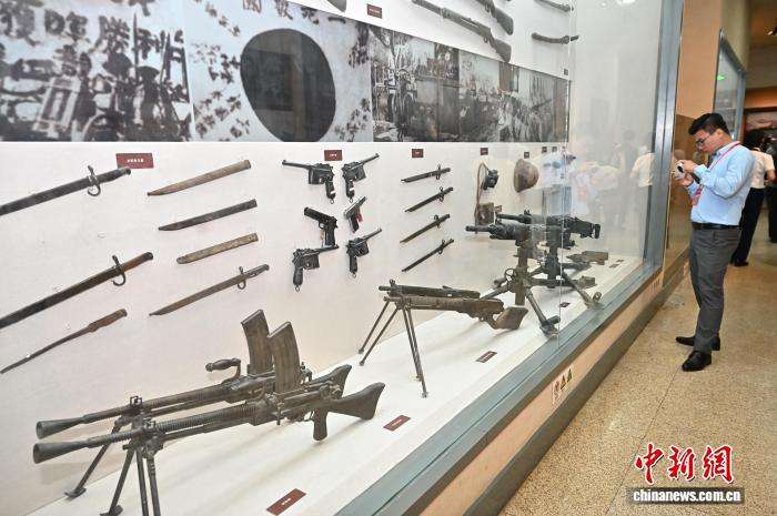 图为驻华外交官参观平型关大捷中收缴的日军武器。
