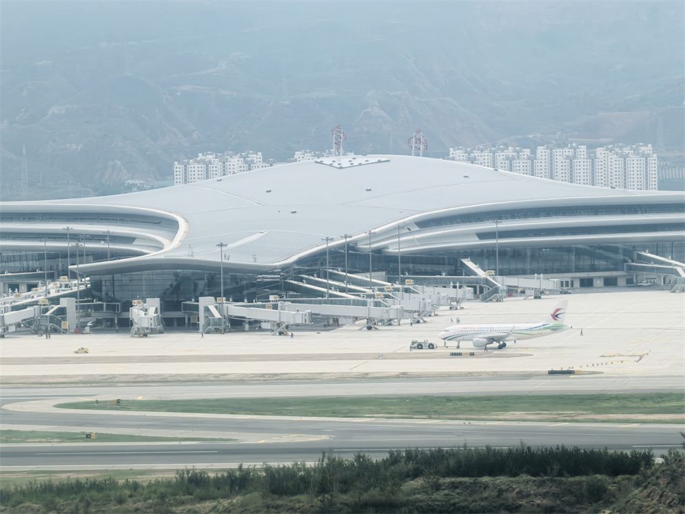 8月6日,西宁机场T3航站楼迎来第一架飞机。(图片来源:中新社)
