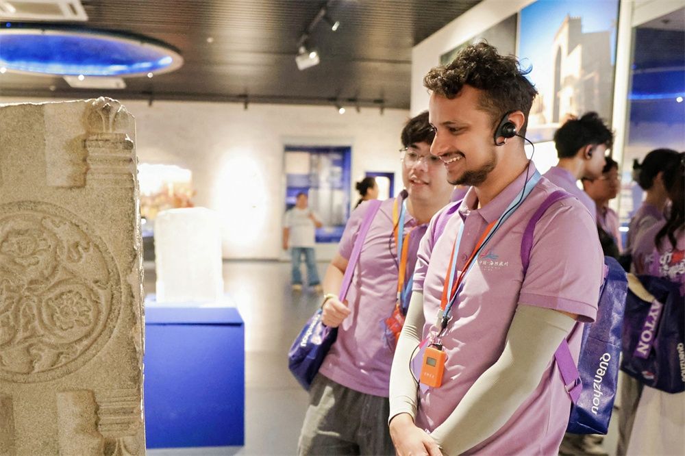 8月7日,“知行泉州·读懂中国”2025国际学子海丝游学季在福建泉州启动。图为学员们参观泉州海外交通史博物馆。(图片来源:泉州市文化广电和旅游局供中新社)