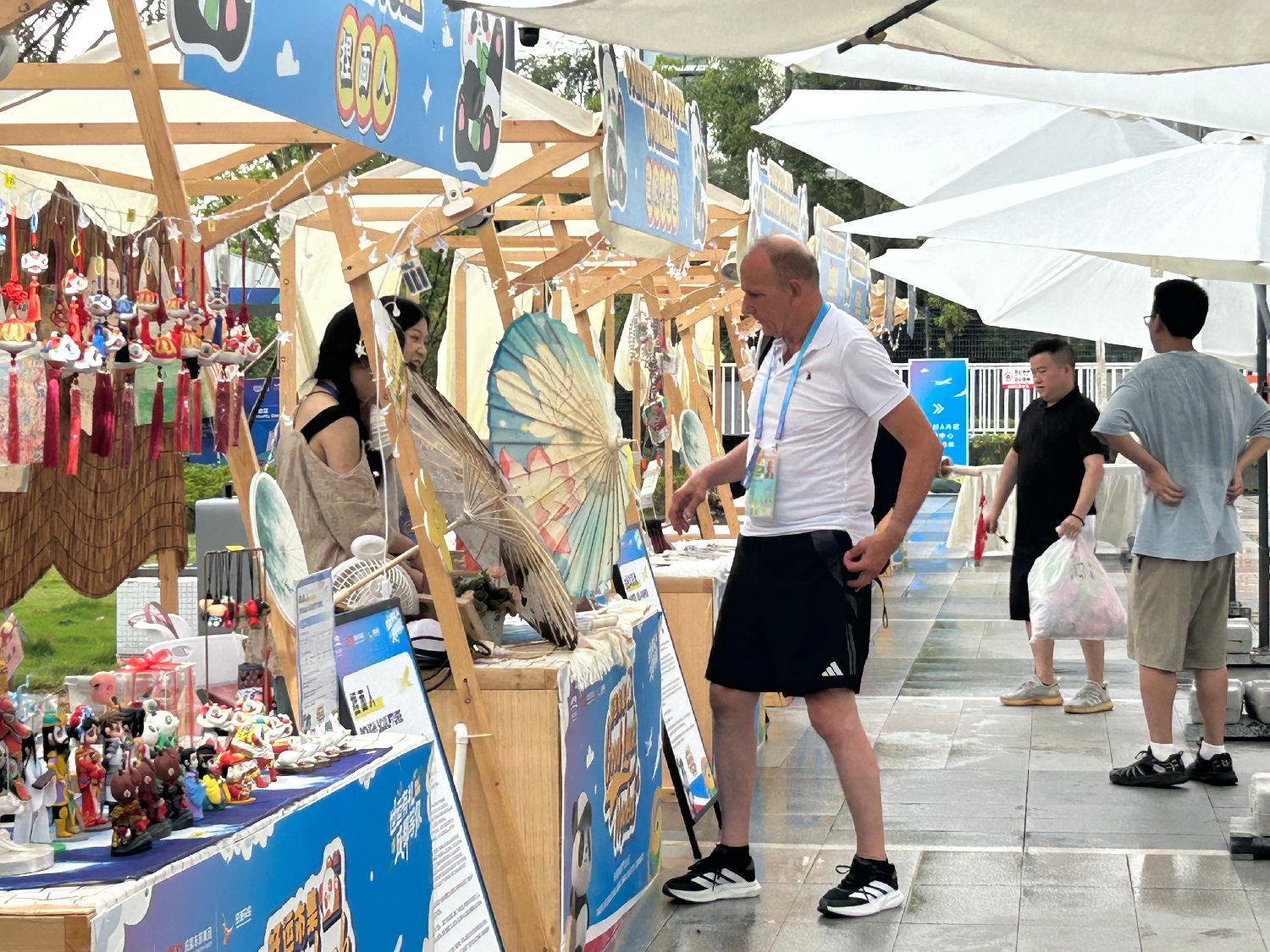 “设置这个市集的初衷,就是让世运村内的运动员、技术官员和随行人员近距离感受非遗和巴蜀文化。”好运市集主理人李笠介绍,国际友人对文创产品各有偏爱,但几乎都对大熊猫元素“毫无招架之力”。