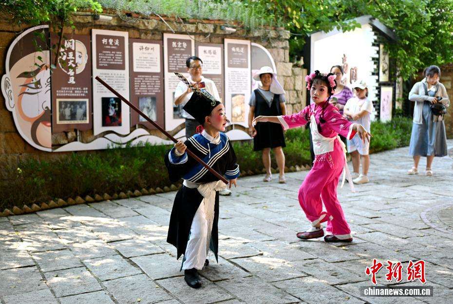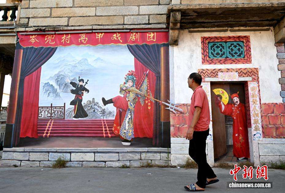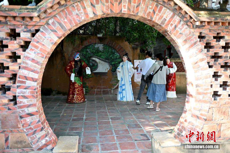 图为8月12日,游客在福建省南安市石井镇岑兜村参观。近年来,岑兜村以戏曲文化为依托,因地制宜,在村里打造了高甲戏户外博物馆,规划了“凡音之起”“戈甲天下”“丑园”等10个点位,吸引许多游客前来游览。