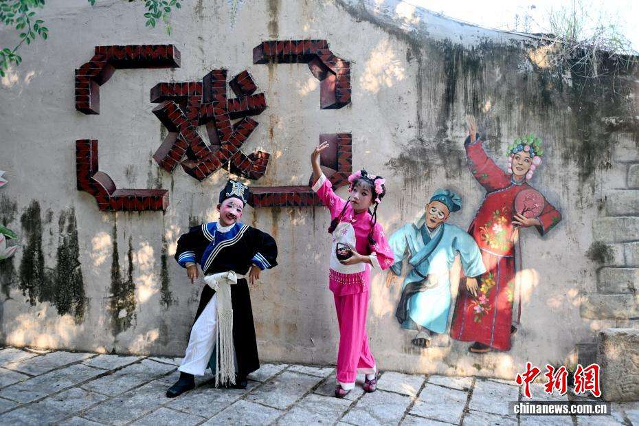 图为8月12日,洪诗语、洪诗博姐弟俩在福建晋江梧林传统村落登台演出。