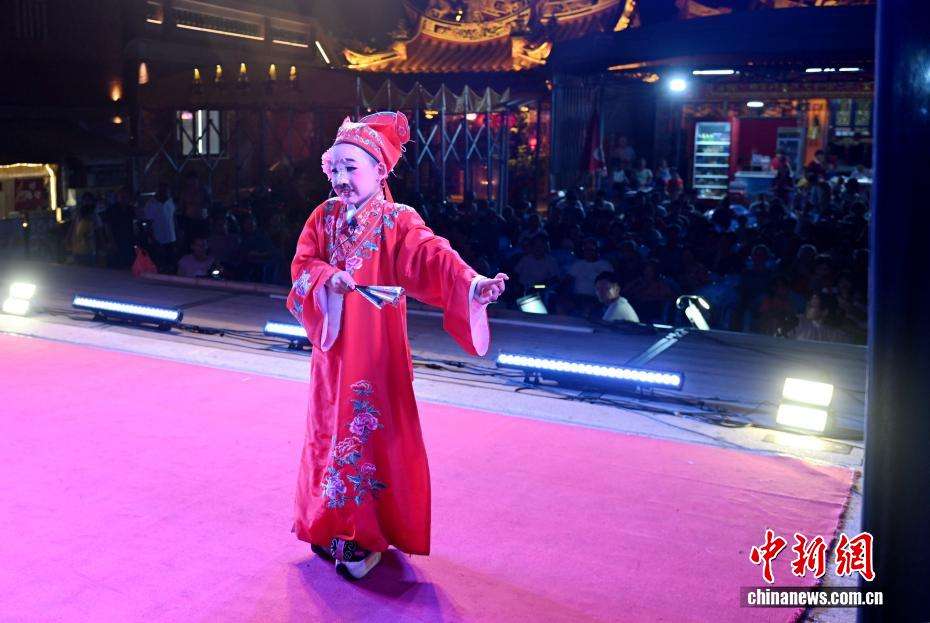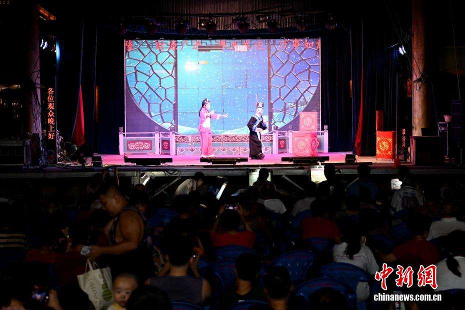 图为8月12日,福建晋江梧林传统村落的高甲戏表演吸引市民、游客观看。