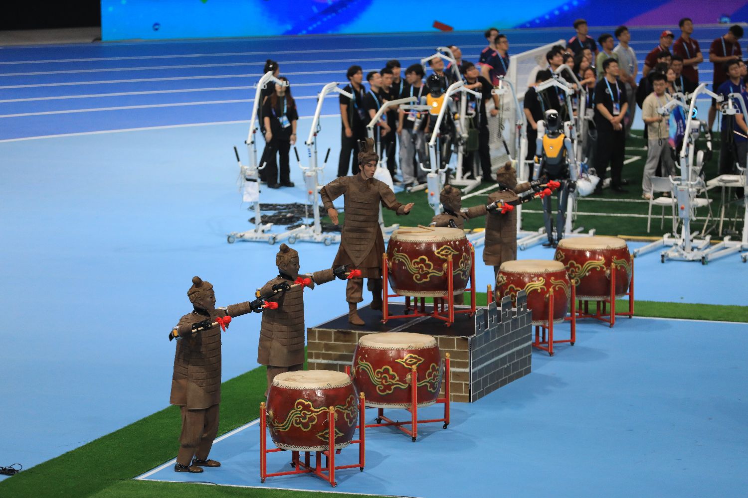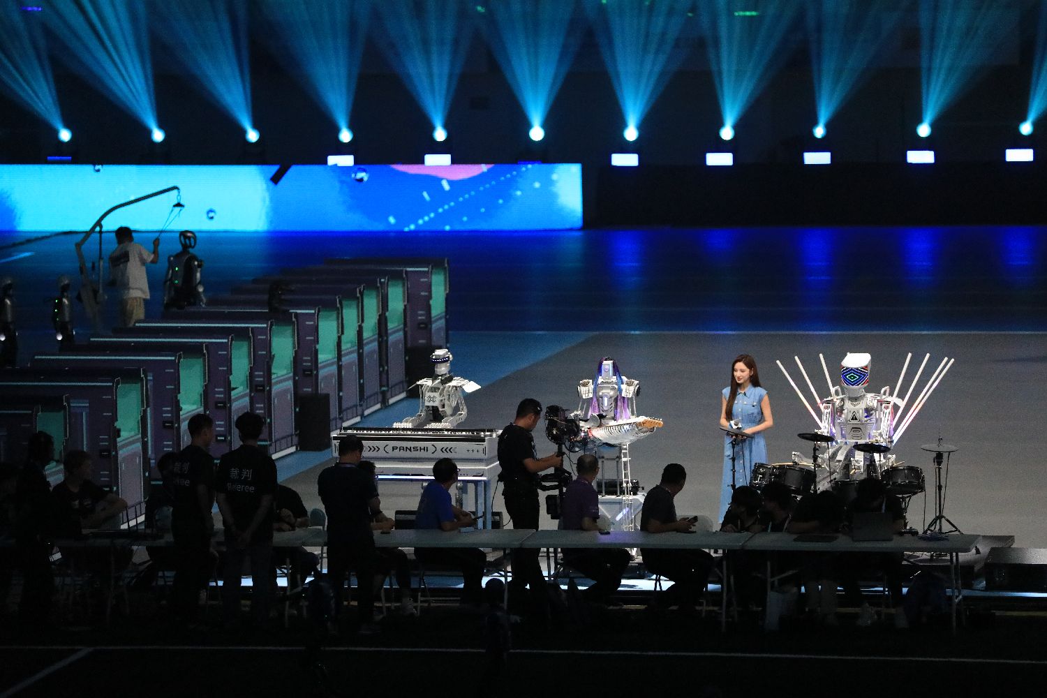 8月14日,在开幕式的传统文化创演节目《智韵和鸣》中,磐石机器人乐队与灵心巧手机器人奏响国风旋律。