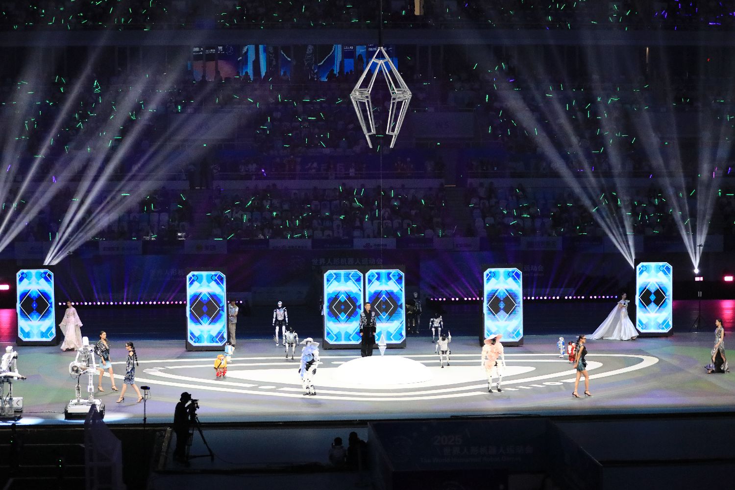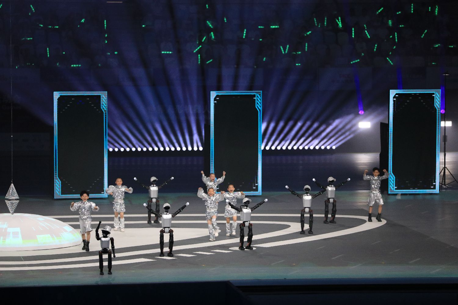 在开幕式上,各参赛队伍齐聚“冰丝带”,形态各异的机器人尽展英姿。机器人街舞、传统戏曲等表演接连亮相,更与专业表演者联袂演出,呈现了科技与人文的交融之美。