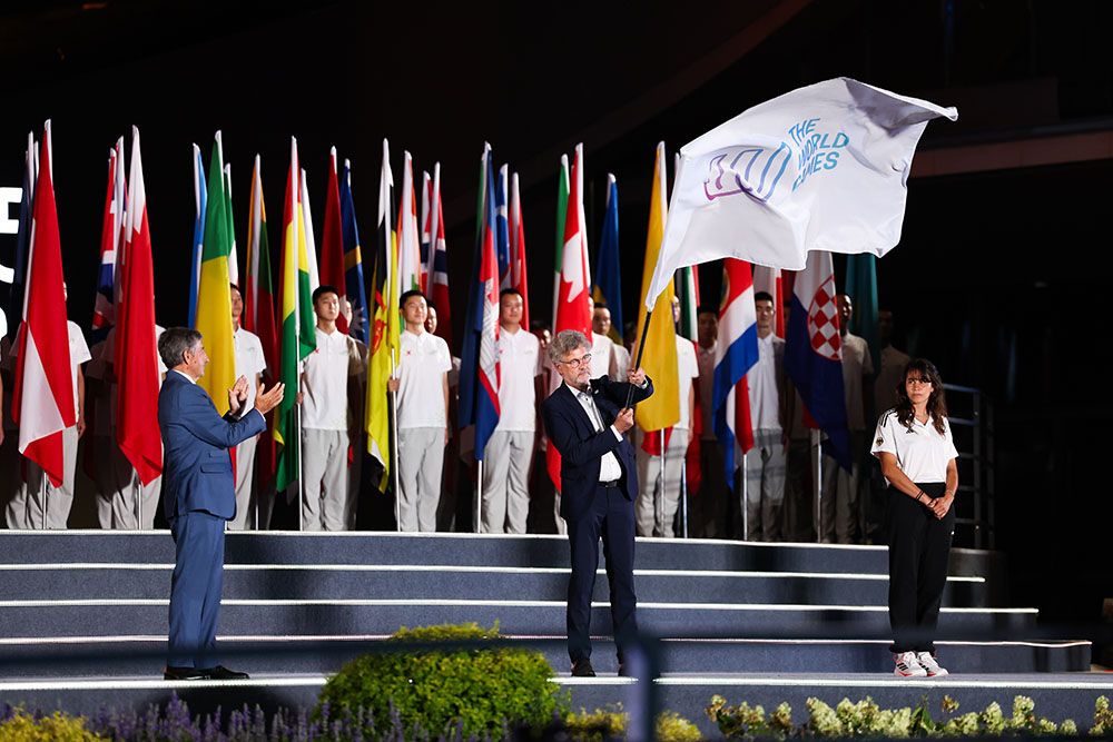 国际世界运动会协会会旗交接仪式。(图片来源:新华社)