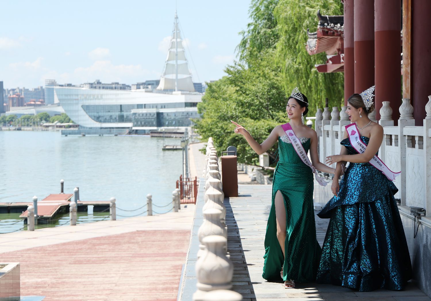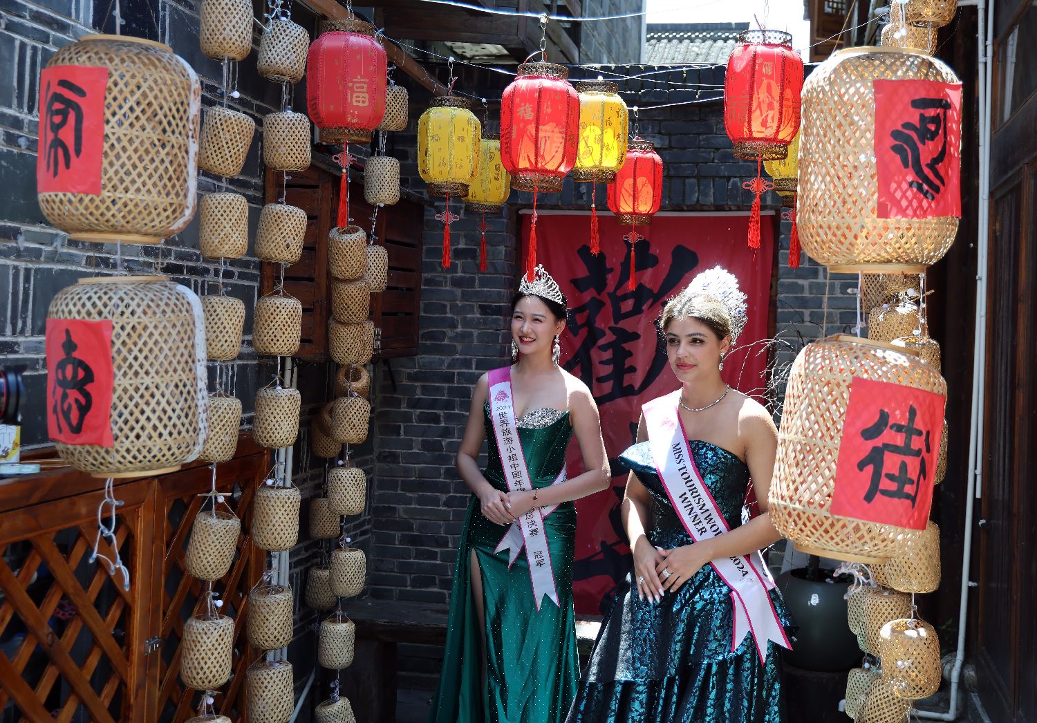 发布会后,来自巴西的2024世界旅游小姐全球总冠军伊莎贝尔与2021世界旅游小姐中国区冠军张涵钰参观游览常德河街。