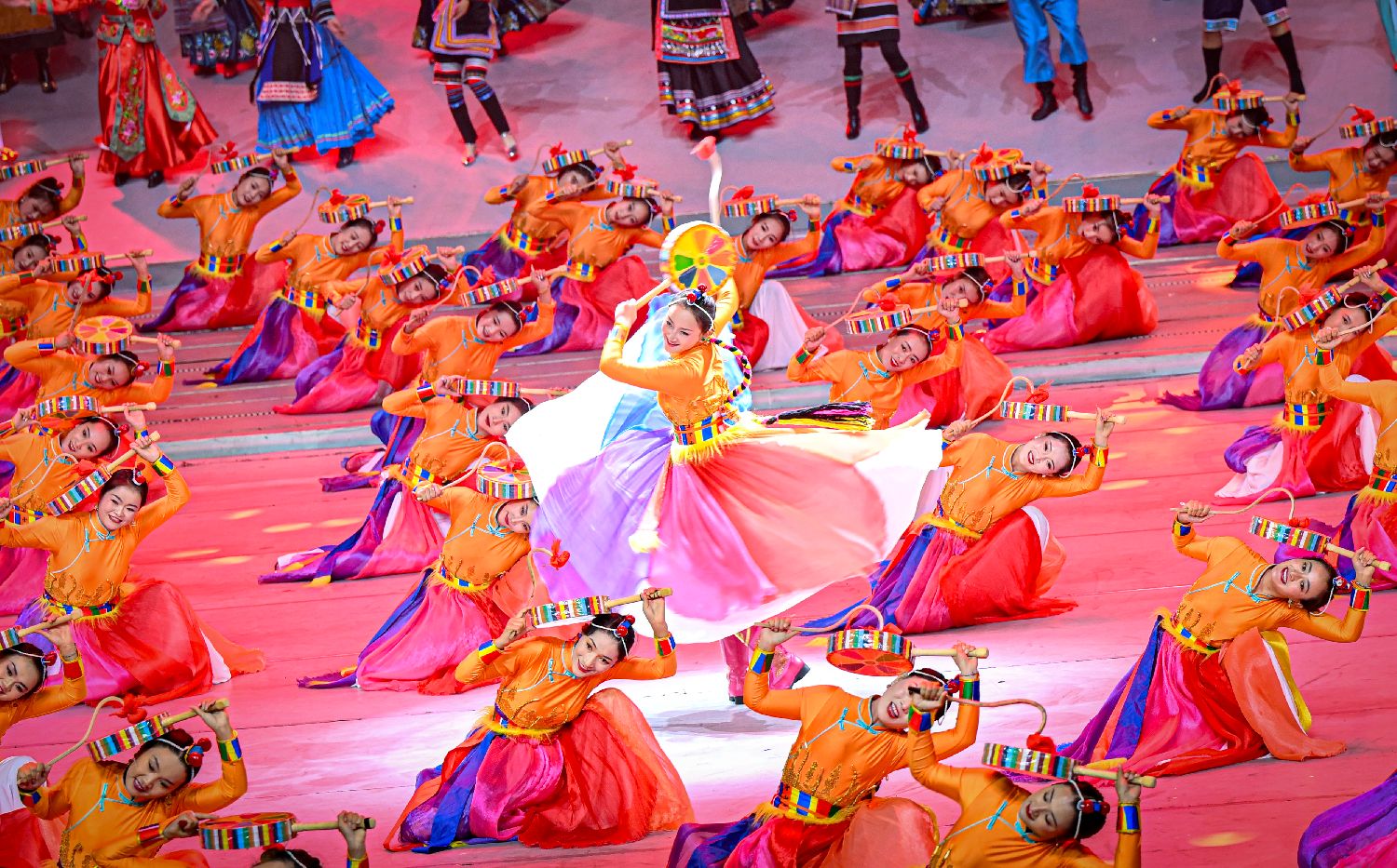 下篇《新的征程》《嘎拉村的欢笑》《琴鹤齐鸣》《我们都是亲兄弟》《在祖国的怀抱》等歌舞,展现幸福新西藏的美好图景,《同心共舞新时代》将晚会推向高潮。