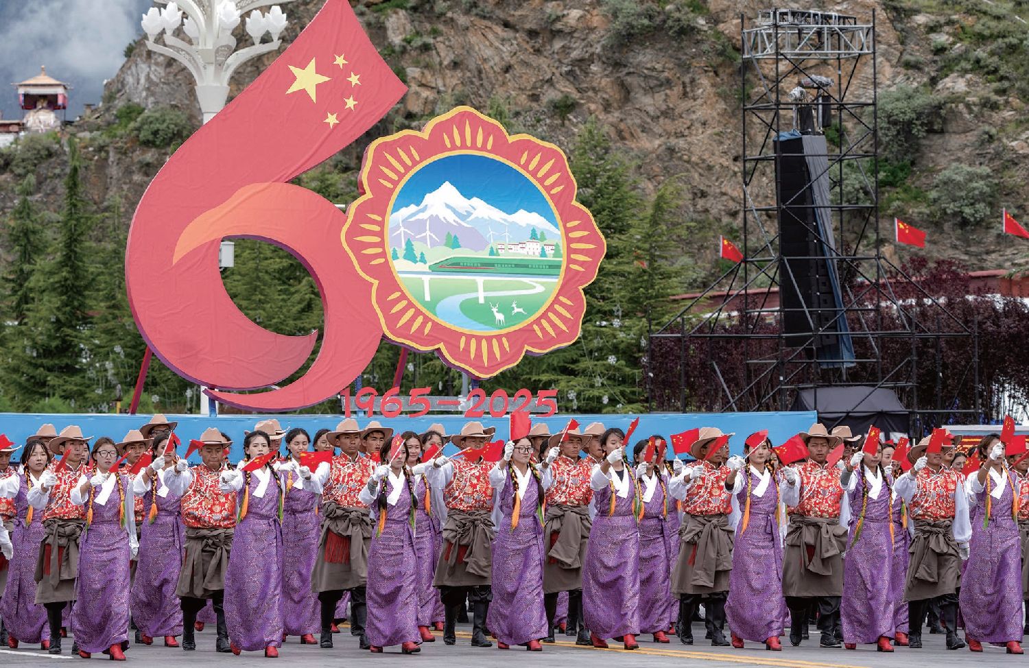 王沪宁发表讲话。他说,1965年9月,在党中央亲切关怀和党的民族政策光辉照耀下,西藏自治区宣告成立。这是西藏发展史上具有划时代意义的大事,巩固了西藏和平解放和民主改革的伟大成果,实现了西藏社会制度的历史性跨越。60年来,西藏经济社会全面发展,民族区域自治制度成功实践,民族团结日益巩固,各族人民生活蒸蒸日上,充分展现了中国共产党领导的坚强力量,充分展现了我国社会主义制度的显著政治优势。