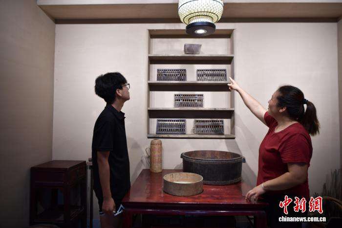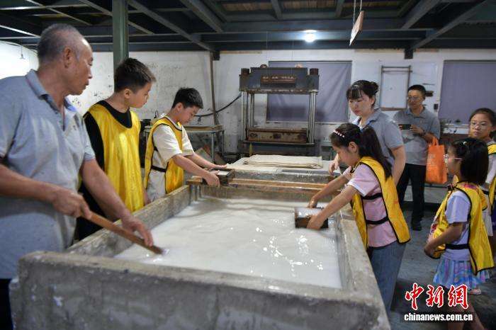 8月21日,河北省保定市竞秀区宝虹艺术博物馆,小朋友们正在体验传统造纸技艺。(图片来源:本文图片均来自中新网)