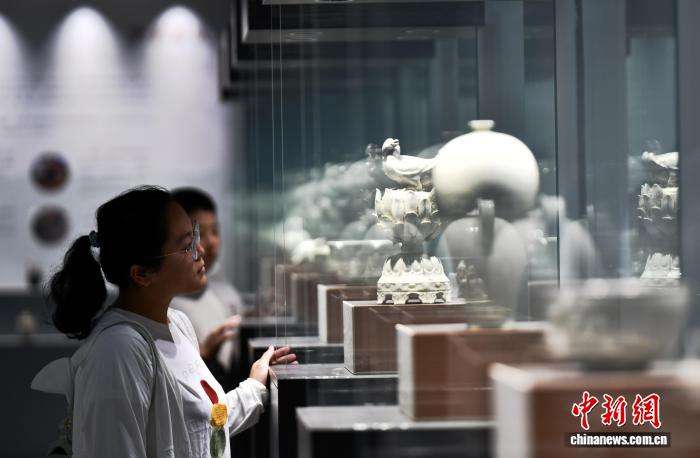 8月20日,参观者在河北省保定市大宋定瓷艺术博物馆参观。