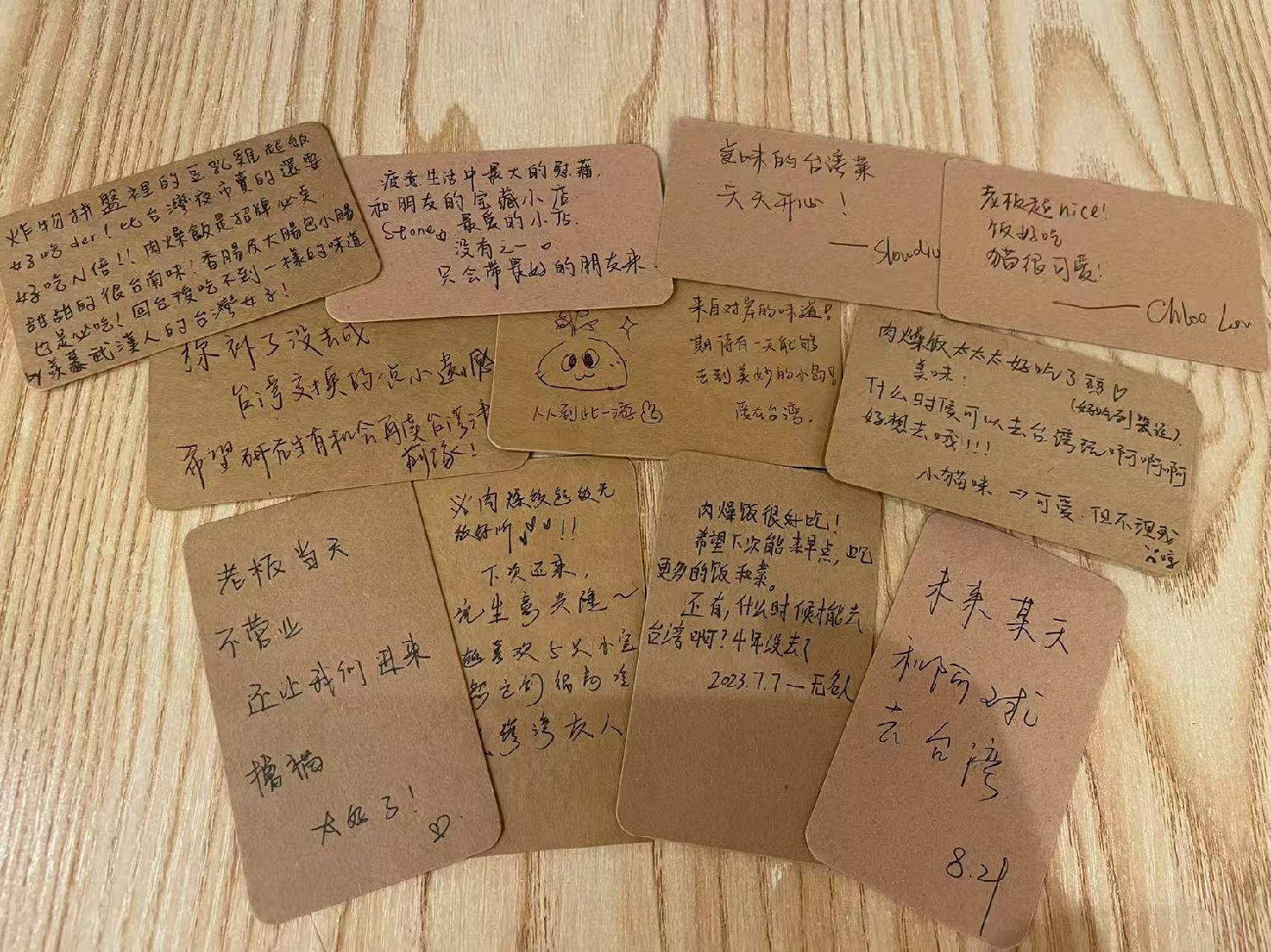 在餐吧内,黄晾炜特意设置了一个留言箱。翻开留言卡,有人称“(这里是)疲惫生活中最大的慰藉”,有人表示“弥补了没去台湾交换的一点小遗憾”,还有人说“来自对岸的味道,期待有一天能够去到美妙的小岛”……