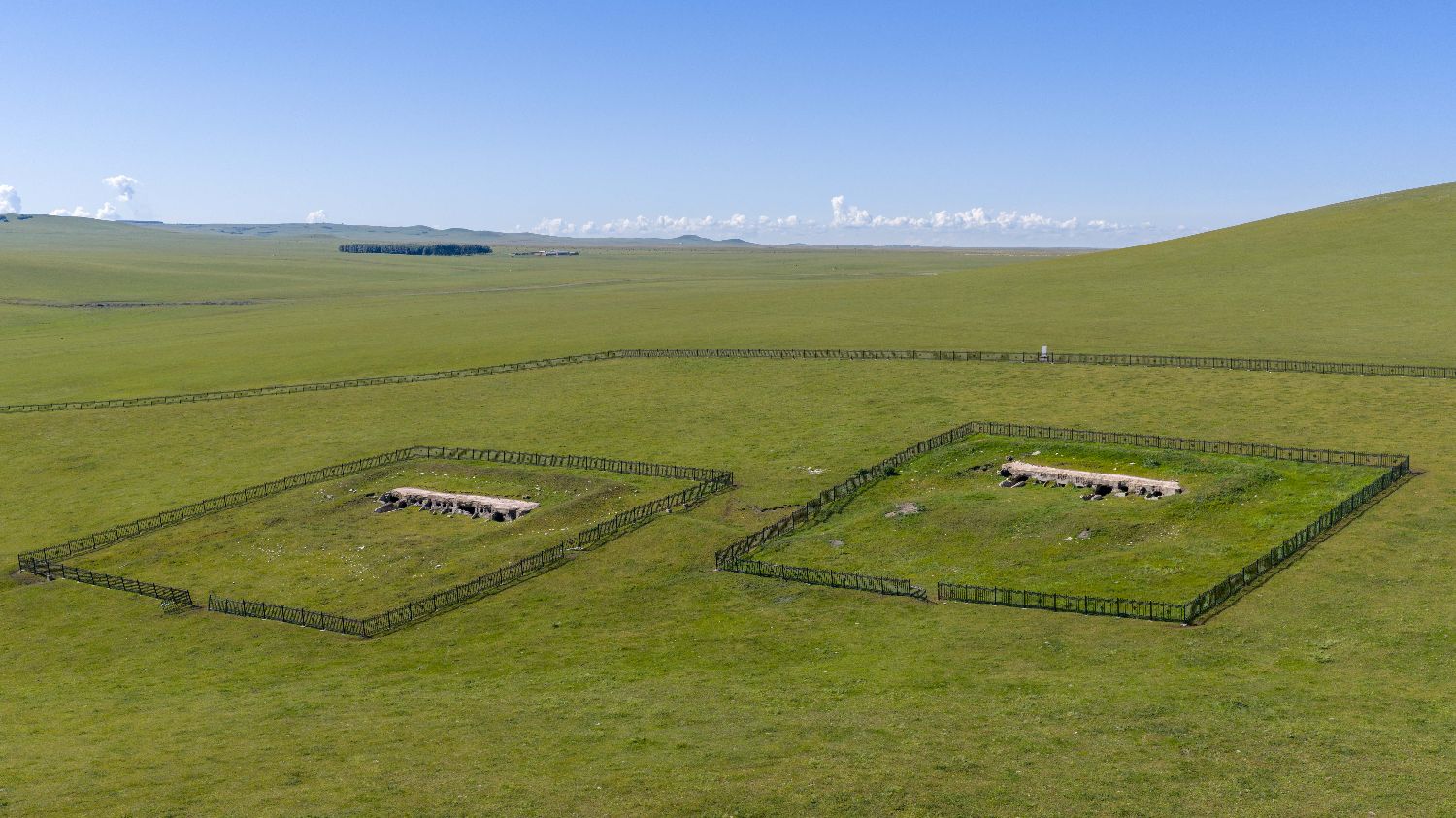8月26日拍摄的巴彦汗日本关东军毒气实验场部分工事遗址(无人机照片)。