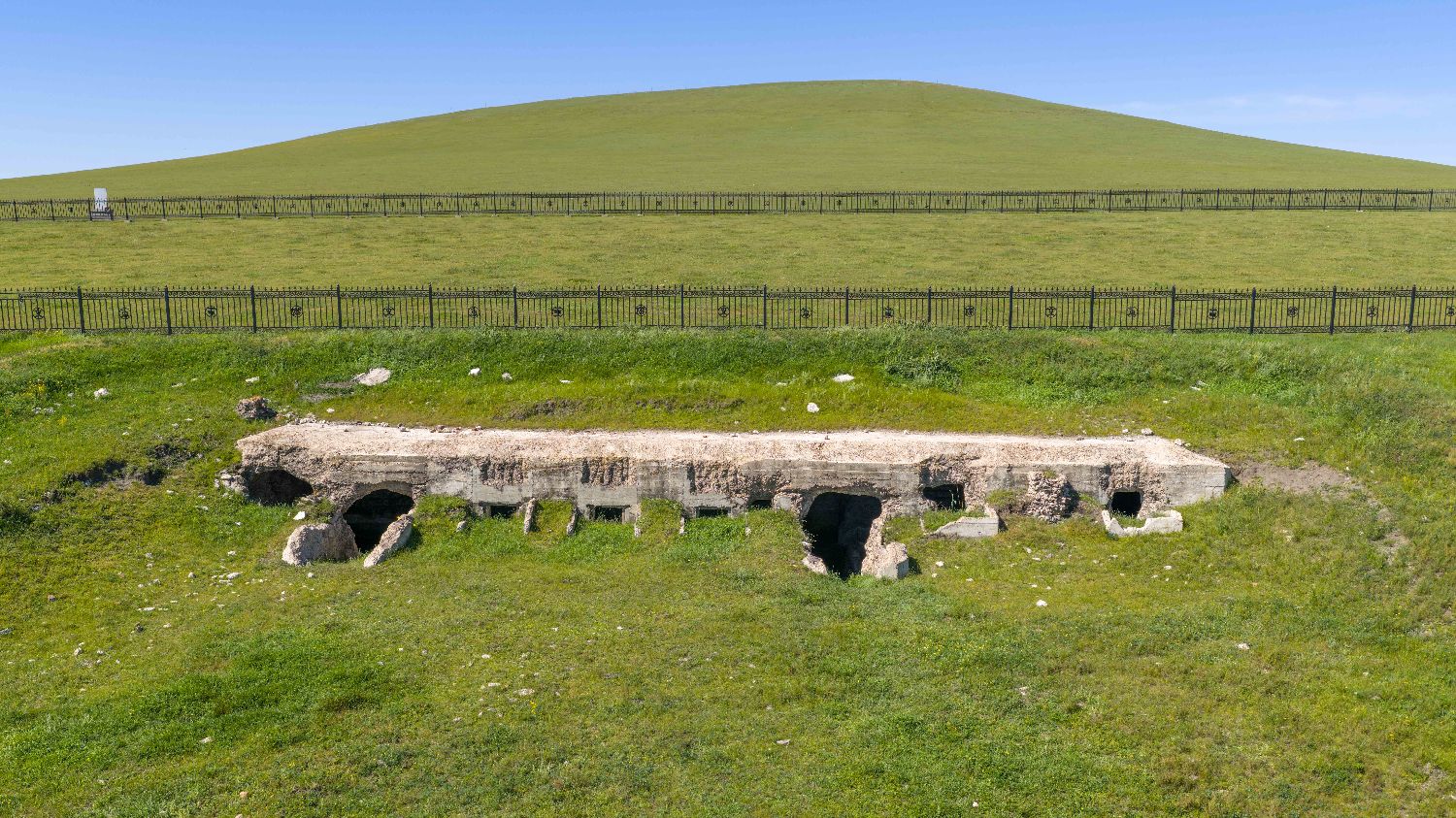 8月26日拍摄的巴彦汗日本关东军毒气实验场一处半地下工事遗址(无人机照片)。