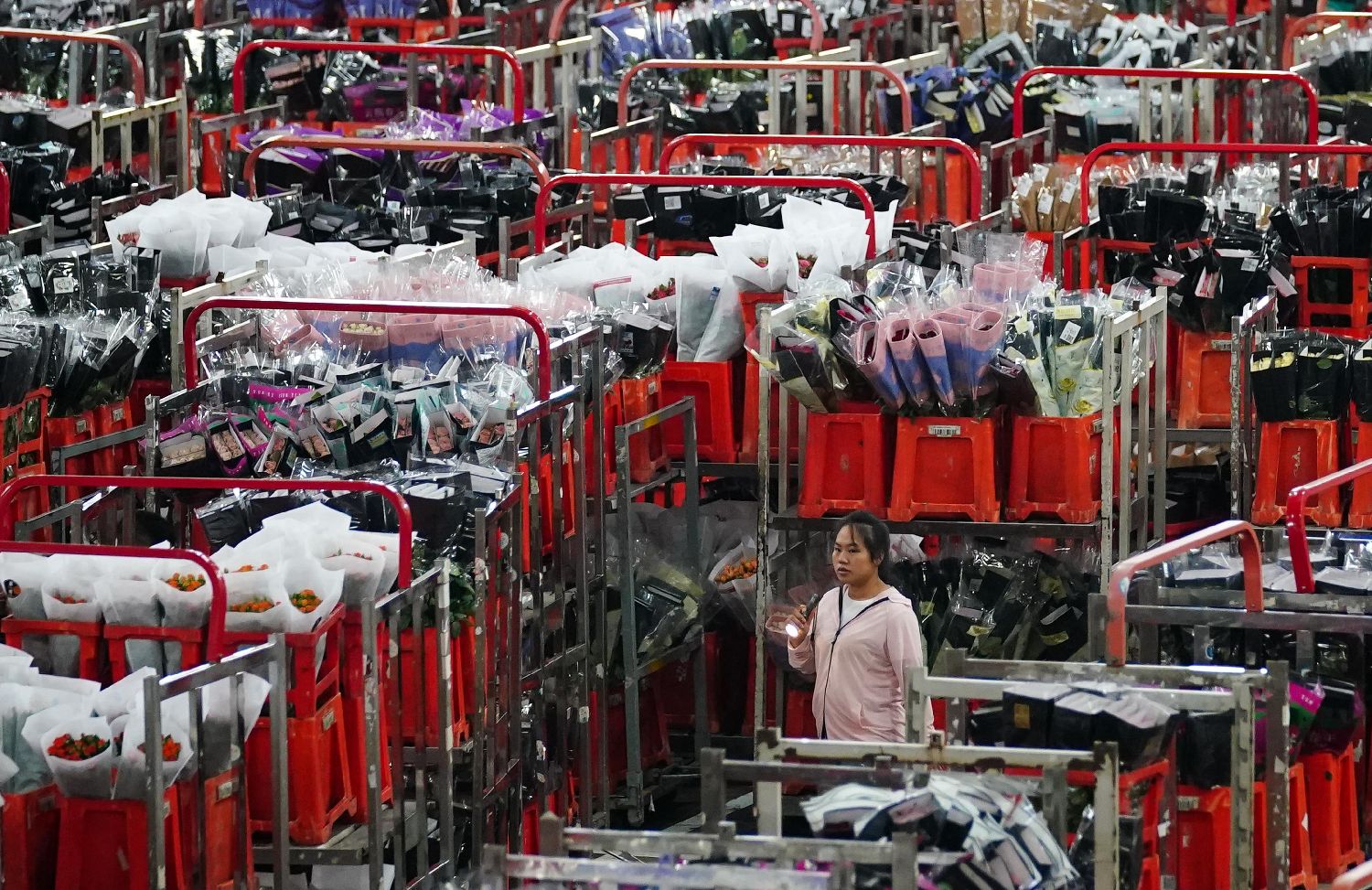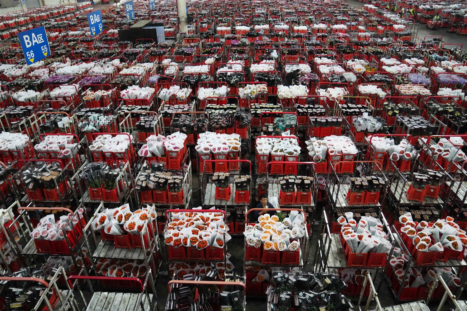 中国传统节日七夕将至,鲜花交易高峰期到来,云南昆明花拍中心热闹非凡。