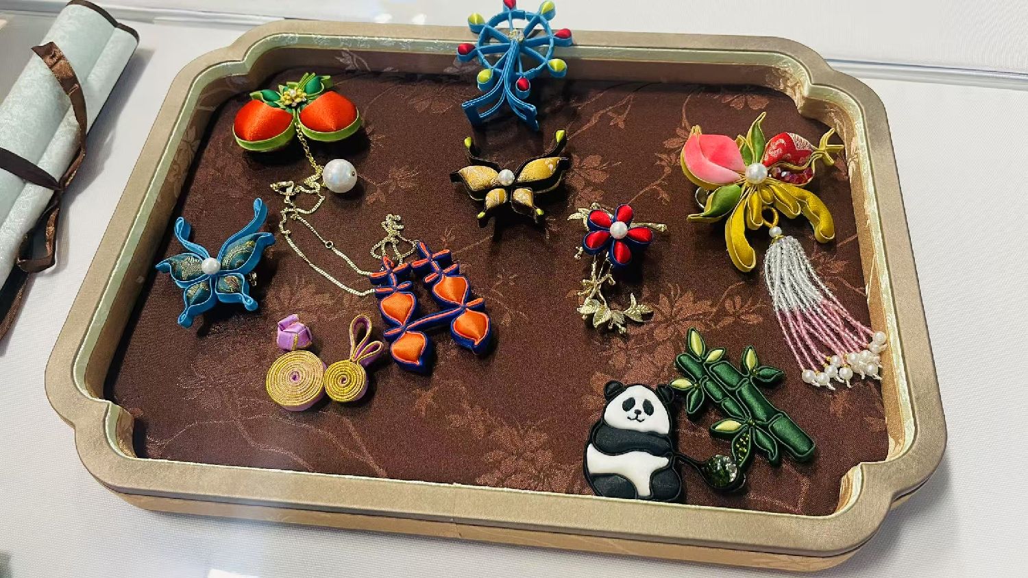 “传统图样的福寿三多、创新造型的‘天津之眼’、中国的国宝大熊猫……”曾氏津派盘扣技艺第四代传承人邢晋对桌上展示的盘扣作品如数家珍。她告诉记者,其盘扣技艺已经走进天津海运职业学院与塔什干国立交通大学共同建立的乌兹别克斯坦鲁班工坊。
