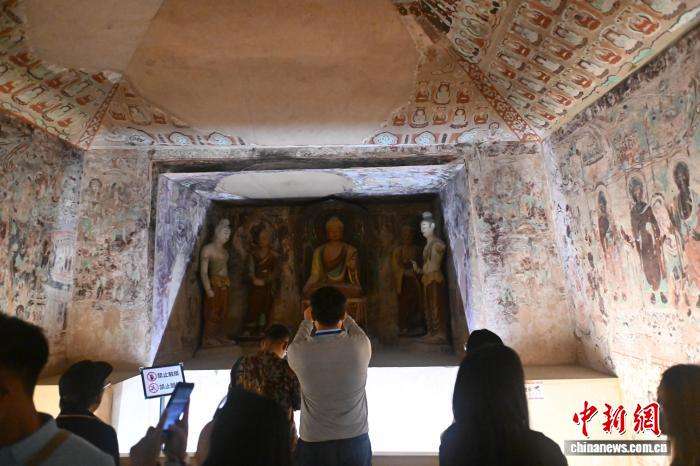 图为活动嘉宾参观敦煌莫高窟复制窟。