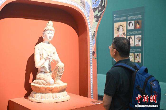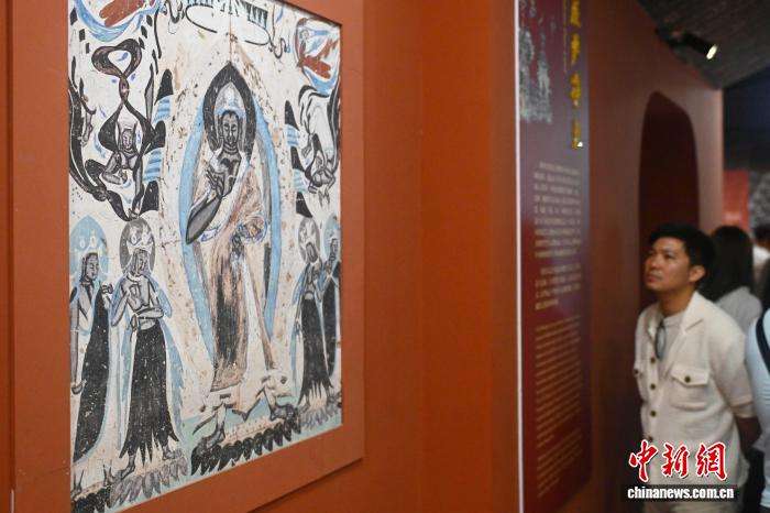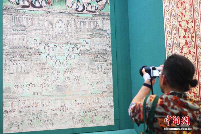 图为活动嘉宾参观了解敦煌壁画、彩塑等文化遗产的数字化保存与永续利用。