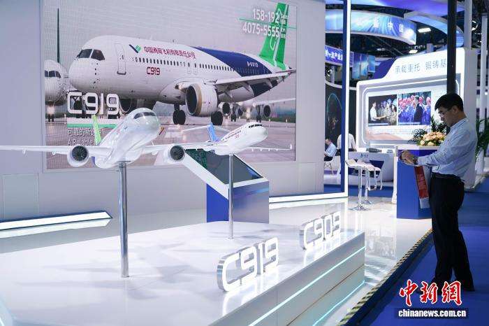 本届“新博会”共设主题展、专业展、应用展3个展区,海内外4000多件(套)新材料领域创新产品和应用场景集中亮相。C919、C909飞机模型吸引观展者。(图片来源:本文图片均据中新网)