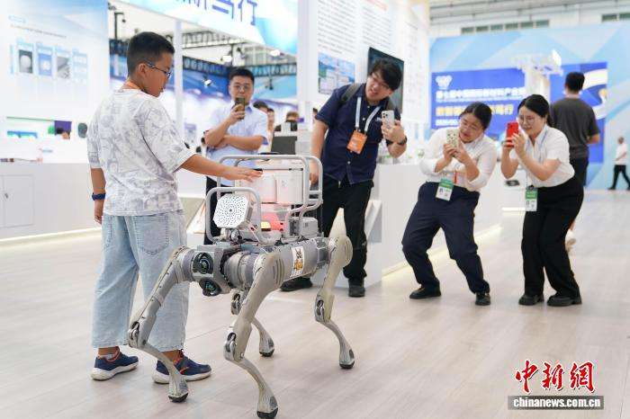 智能巡检四足机器人吸引观展者。