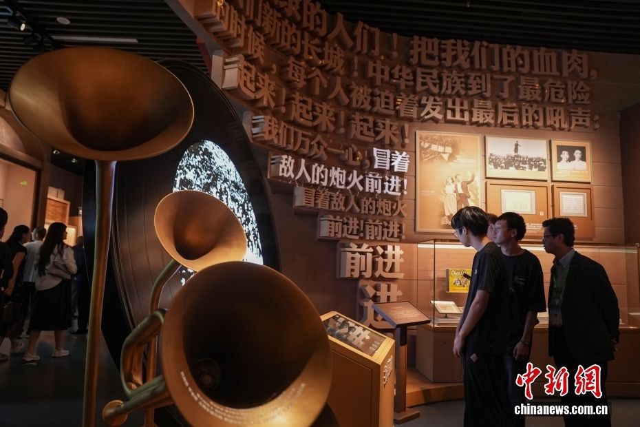 图为民众聆听抗战歌曲。