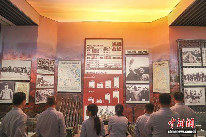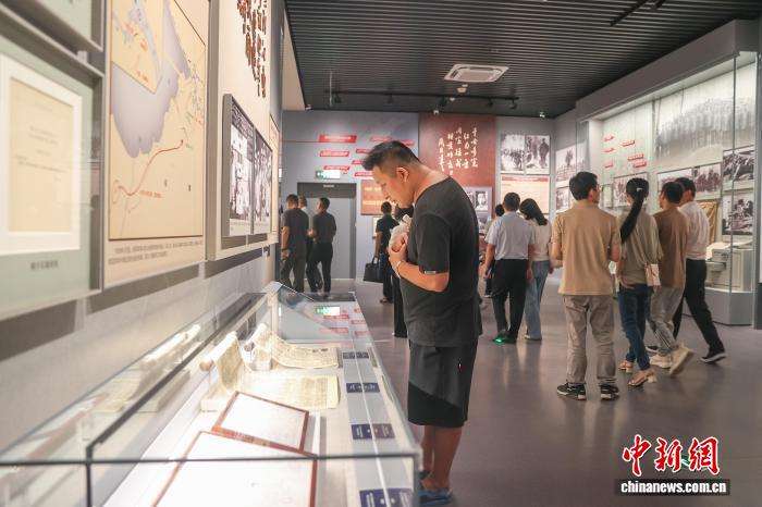 9月2日,在江西南昌,民众在参观展览《铁军出征》。当日,南昌新四军军部旧址陈列馆新展《铁军出征》正式对外开放。该展览重点展示了新四军在南昌的历史,彰显了南昌在新四军发展史上的重要地位与作用。(图片来源:中新社)