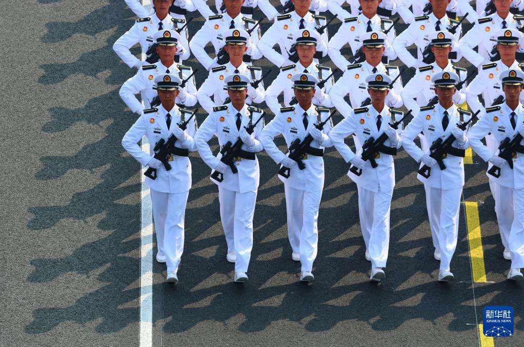 图为海军方队接受检阅。