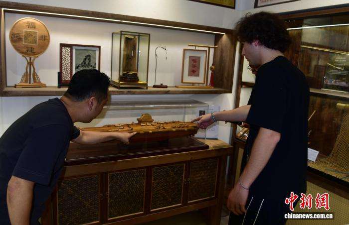 9月2日,游客观看竹编作品“有福之舰”。