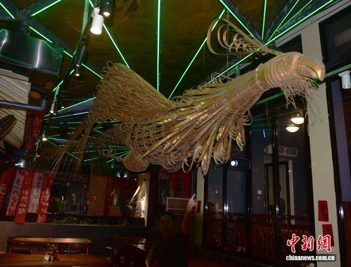 9月2日,谢宏星的竹编作品凤凰在武夷山宋街展示。