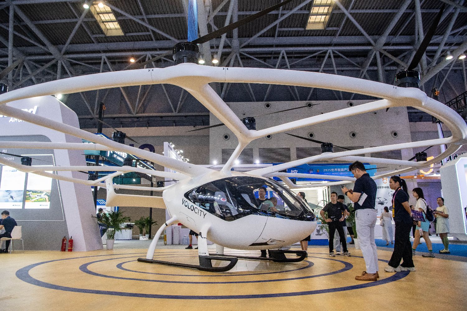 9月5日,观众参观体验轻型智能混动载人飞行器。