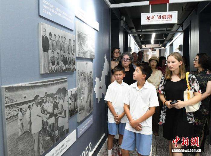 史迪威将军后代一行在重庆大田湾小学足球博物馆参观。