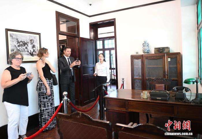 史迪威将军外曾孙丹尼斯·考克斯(左三)在史迪威旧居参观。