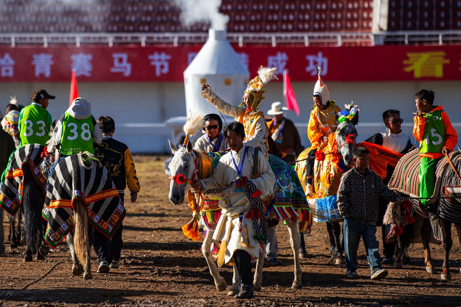 9月7日,骑手们在传统大跑项目前的传统煨桑活动中祈福。