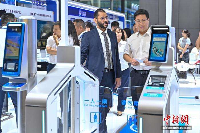 博览会上的智能自助登机闸机吸引参会人员。