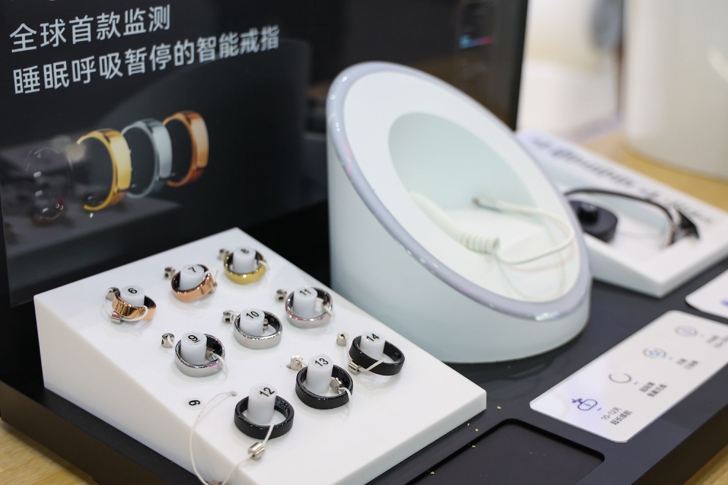 9月7日在2025世界智能产业博览会现场拍摄的监测睡眠呼吸暂停的智能戒指。