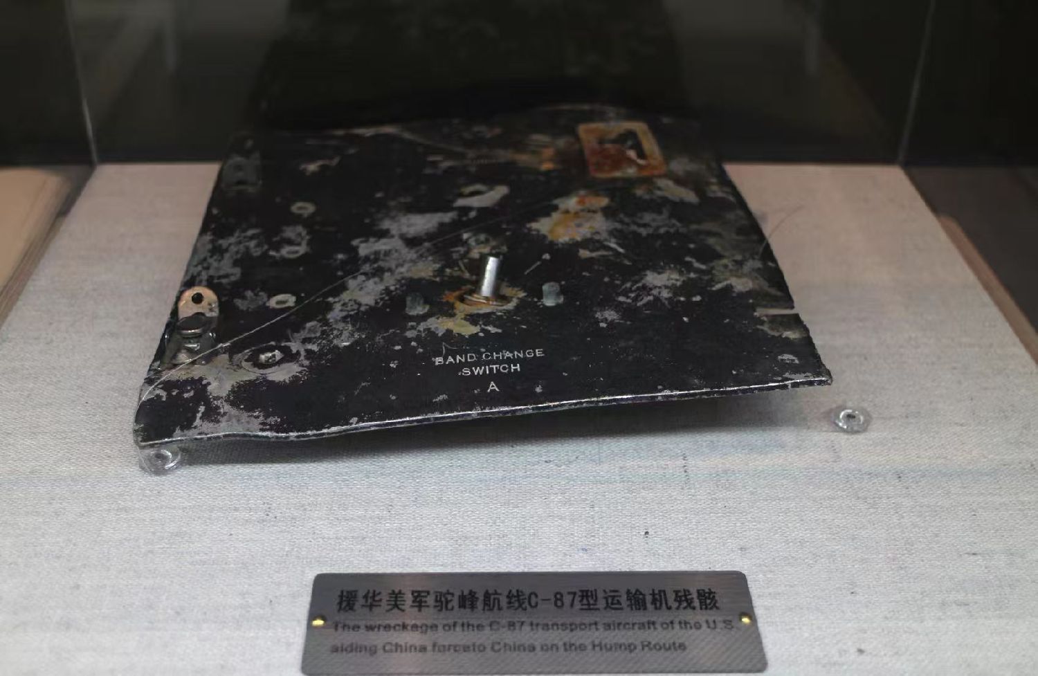 9月8日,“正义无界烽火同袍——中国人民抗日战争中的国际友人”展览在沈阳二战盟军战俘营旧址陈列馆开展。图为展览中展出的援华美军驼峰航线C-87型运输机残骸。(图片来源:沈阳“九·一八”历史博物馆供图)