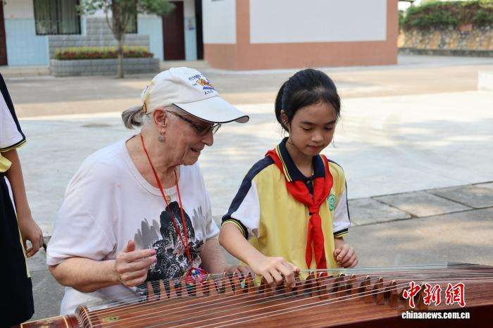 中国小学生教飞虎队后裔弹古筝。
