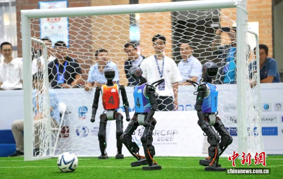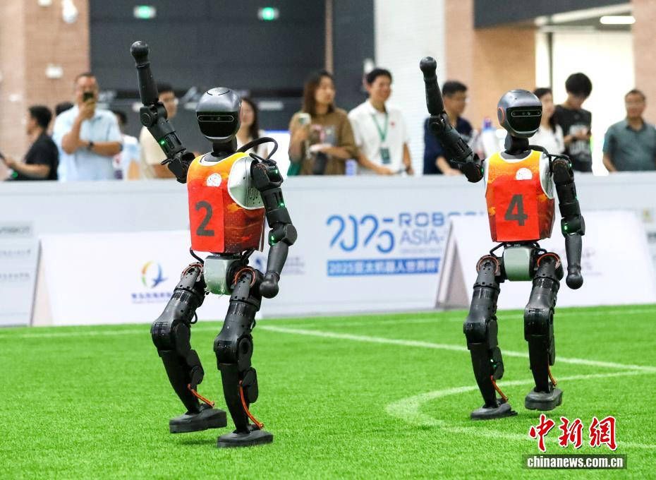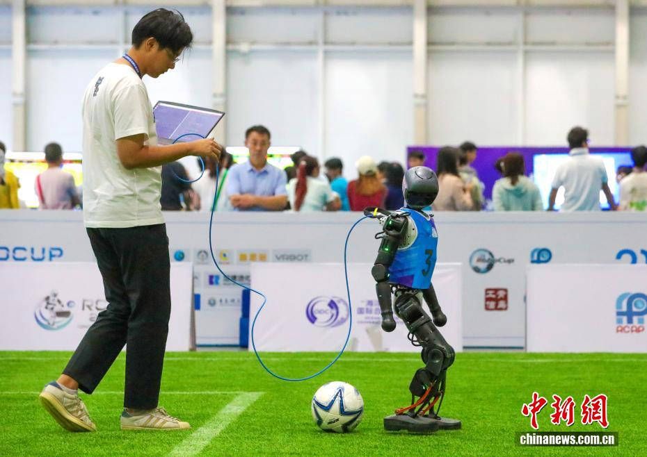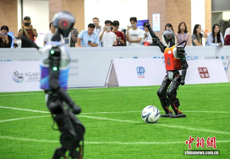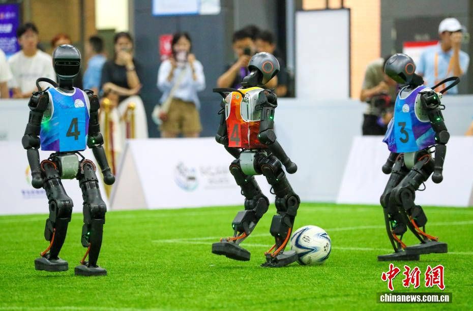 9月8日,机器人在进行足球比赛。(图片来源:本文图片均据中新网)