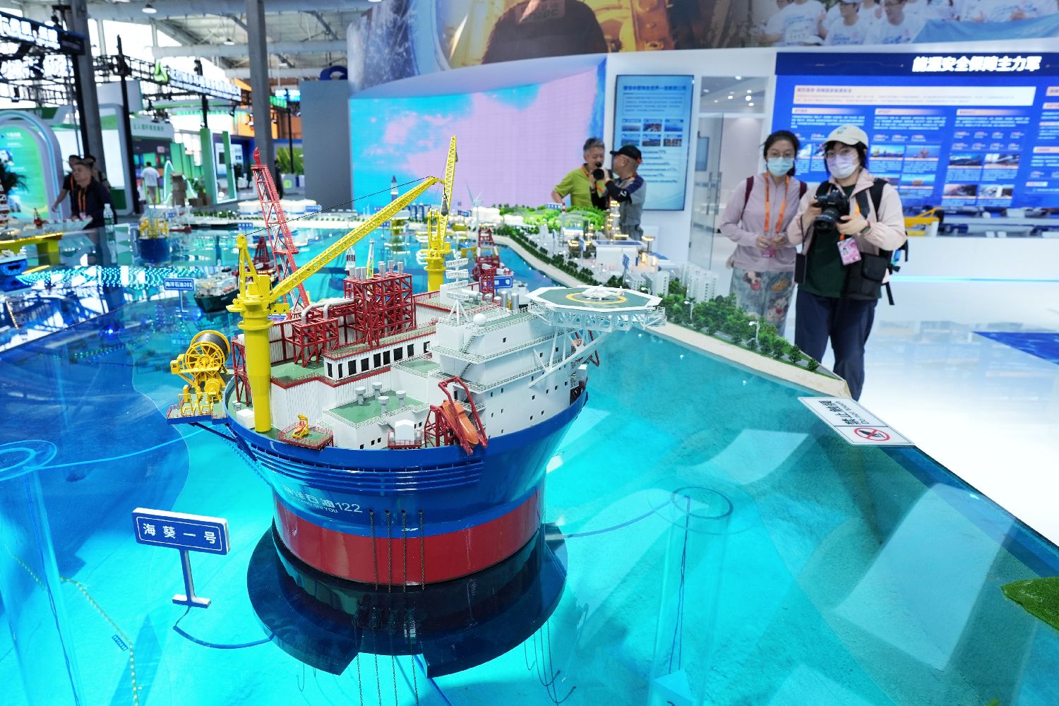 9月9日,在北京首钢园区,2025年服贸会的中国海油展台吸引媒体记者。2025年中国国际服务贸易交易会(服贸会)将于9月10日至14日在北京首钢园区举办,主题为“数智领航,服贸焕新”。(图片来源:本文图片均自中新社)