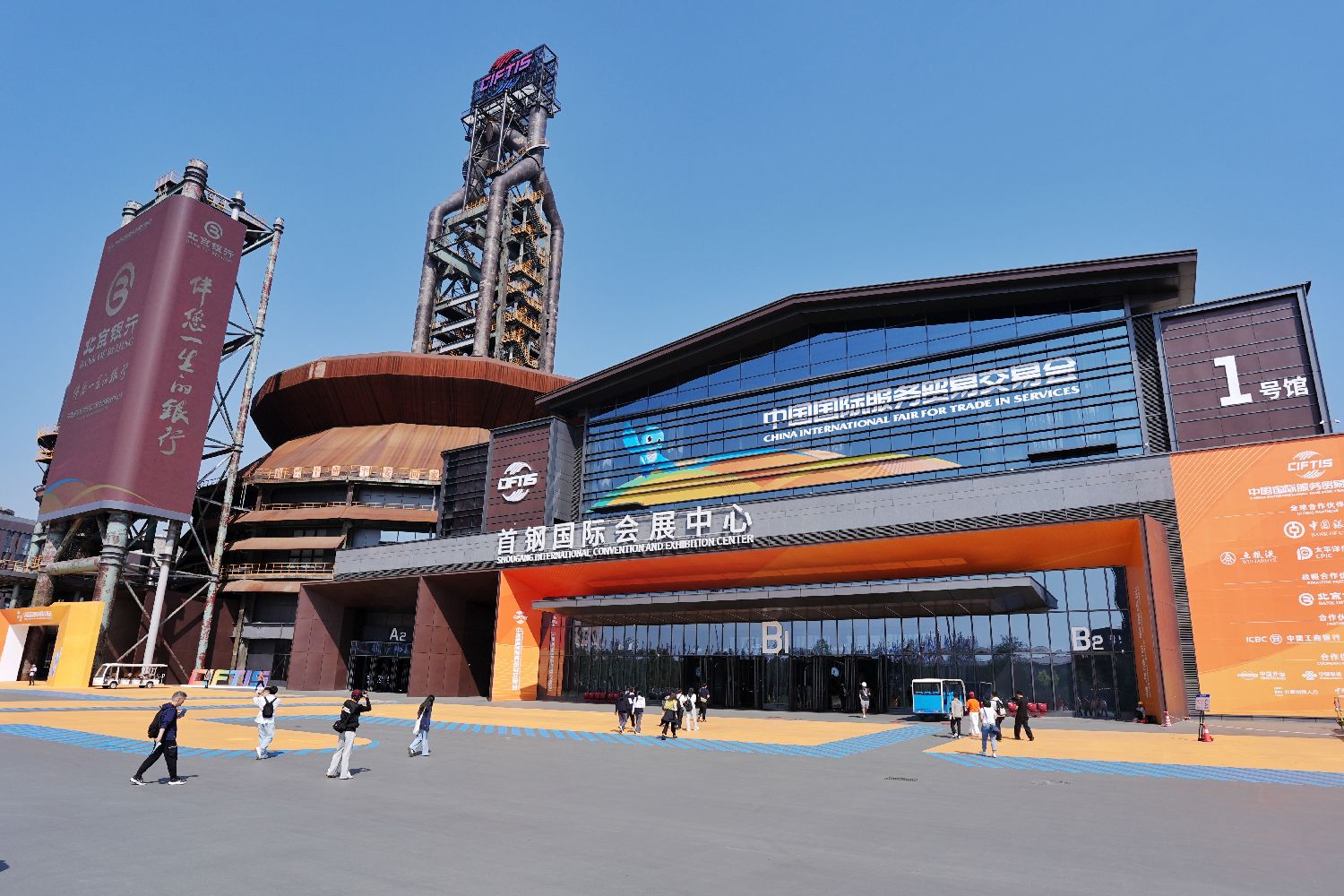 据悉,本次服贸会正式启用“一会一址”举办模式,永久落户首钢园。图为9月9日,在北京首钢园区拍摄的2025年服贸会1号馆。