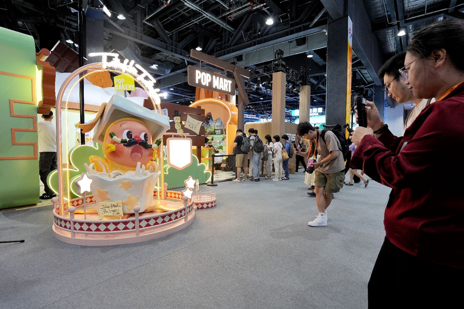 9月9日,在北京首钢园区,2025年服贸会的泡泡玛特展台吸引媒体记者。