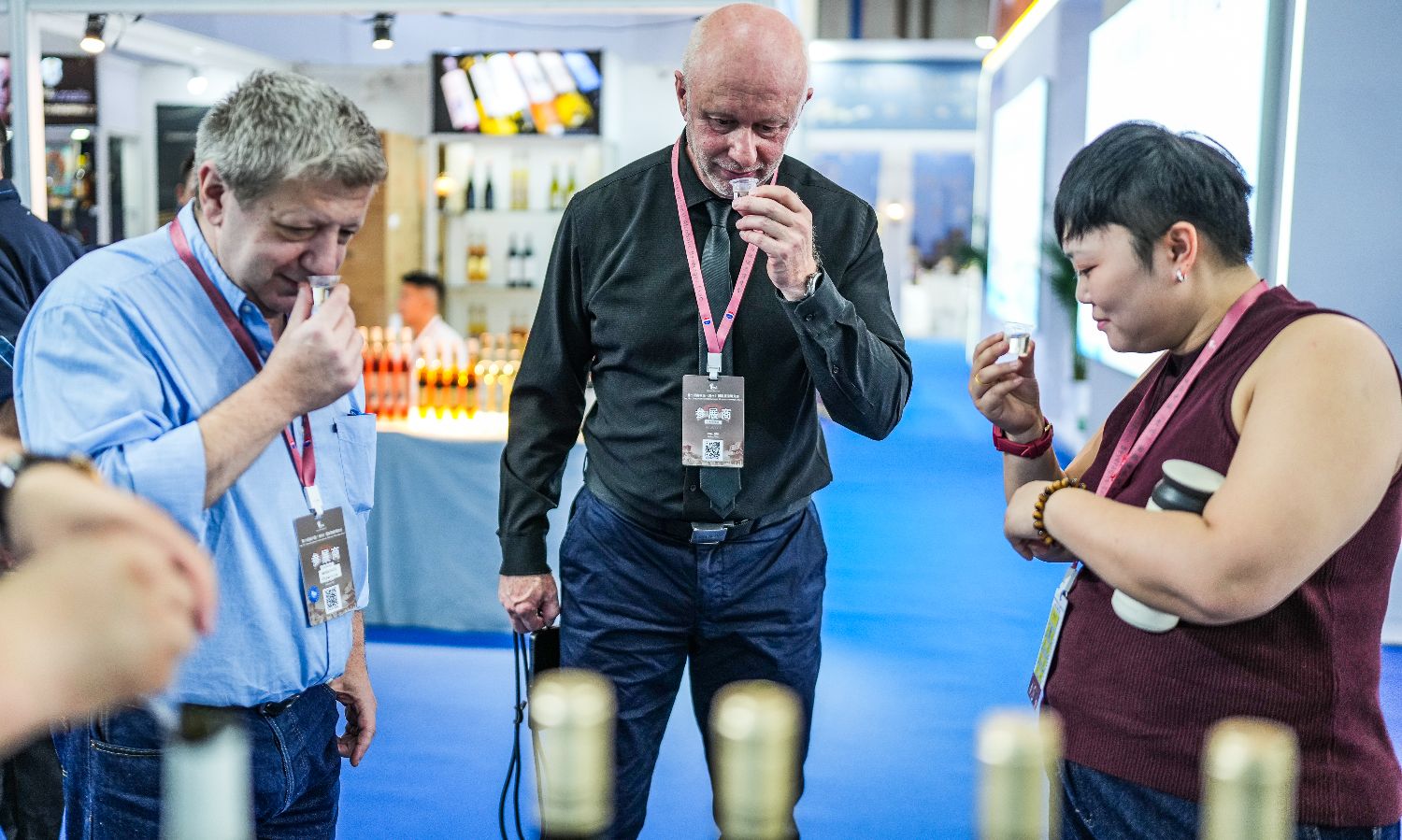 9月9日,参展商在酒博会现场品酒。